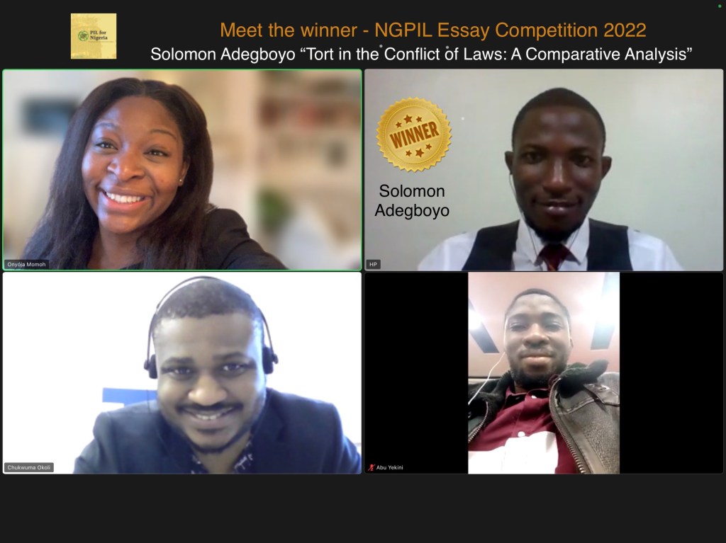The NGPIL colleagues were pleased to meet the winners of the 2023 NGPIL Conflict of Law’s Essay Prize. This year, we awarded two candidates, winner and first runner up, for excellent and engaging pieces on PIL and Nigeria.