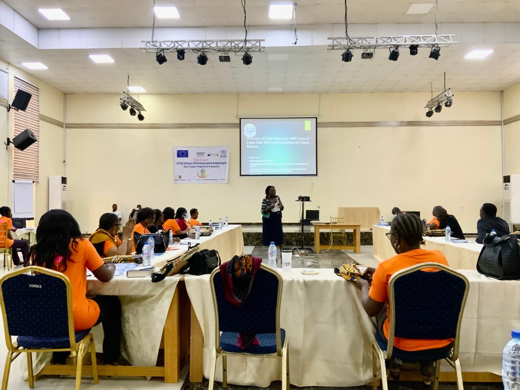Onyója delivers paper to Lagos State Ministries, High Court judges and NGOs at Child Protection Workshop in Lagos.