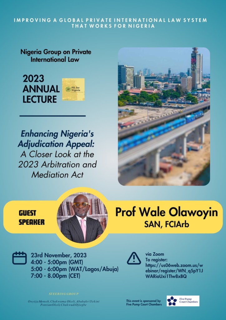 With 249 registered attendees, on the 23rd November 2023, 5pm (WAT/Lagos/Abuja) the NGPIL hosted our guest speaker Professor ‘Wale Olawoyin SAN, FCIArb at this year’s conference. The lecture explored the coming into force of the Arbitration and Mediation Act 2023 and how, from a private international law perspective, the arbitration appeal process in Nigeria can be enhanced. Discussions built on practice thus far, with the aim of enbaling practitioners, judges and academics alike to develop knowledge and insight into its utility.